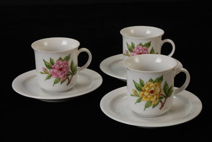 Kop en schotel van Van Nelle met gele bloem, "Roselle"