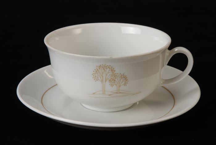 Wijde theekop (A) en schotel (B) van Van Nelle, afbe...