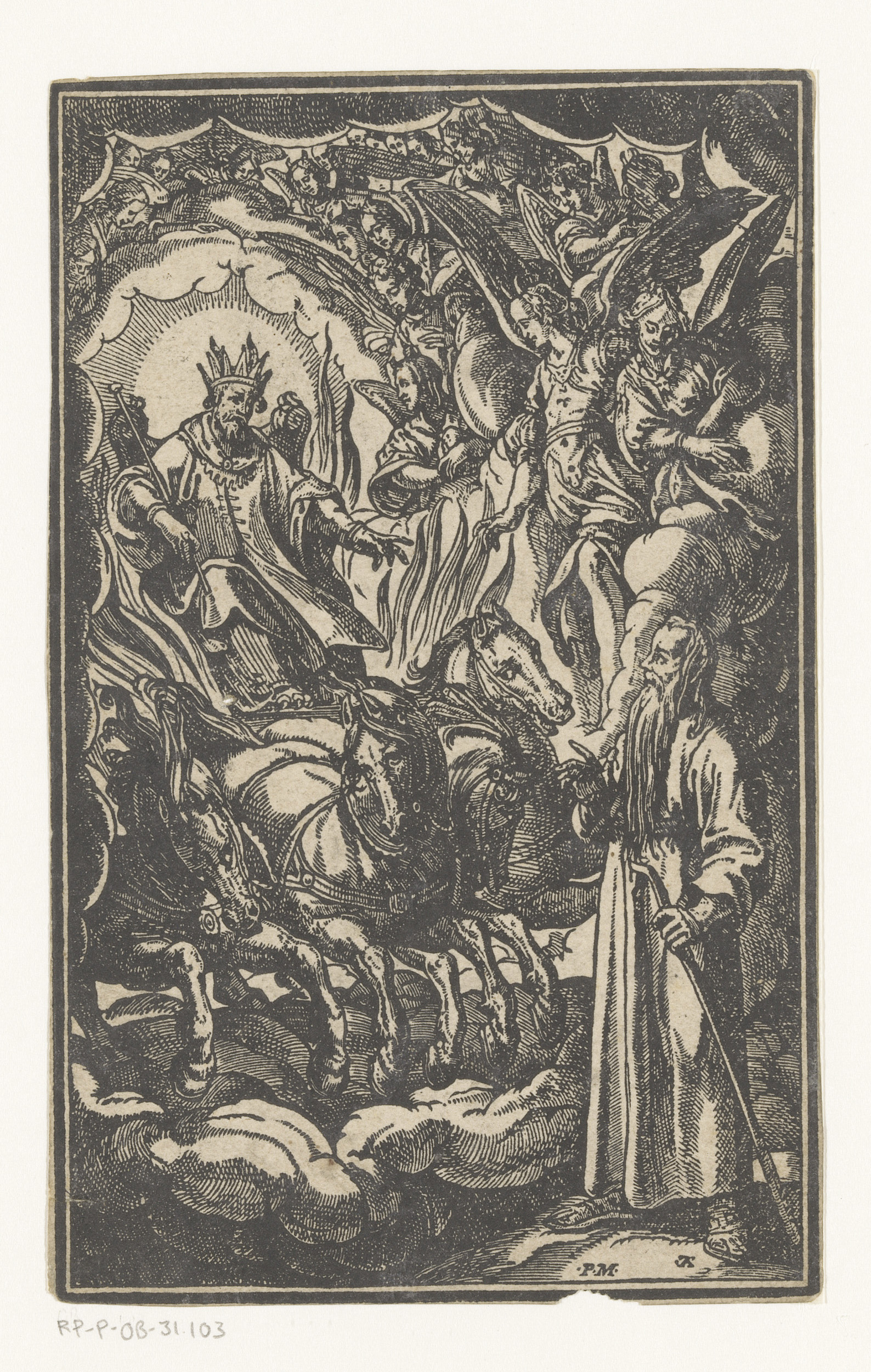Gekroonde heilige op een wagen