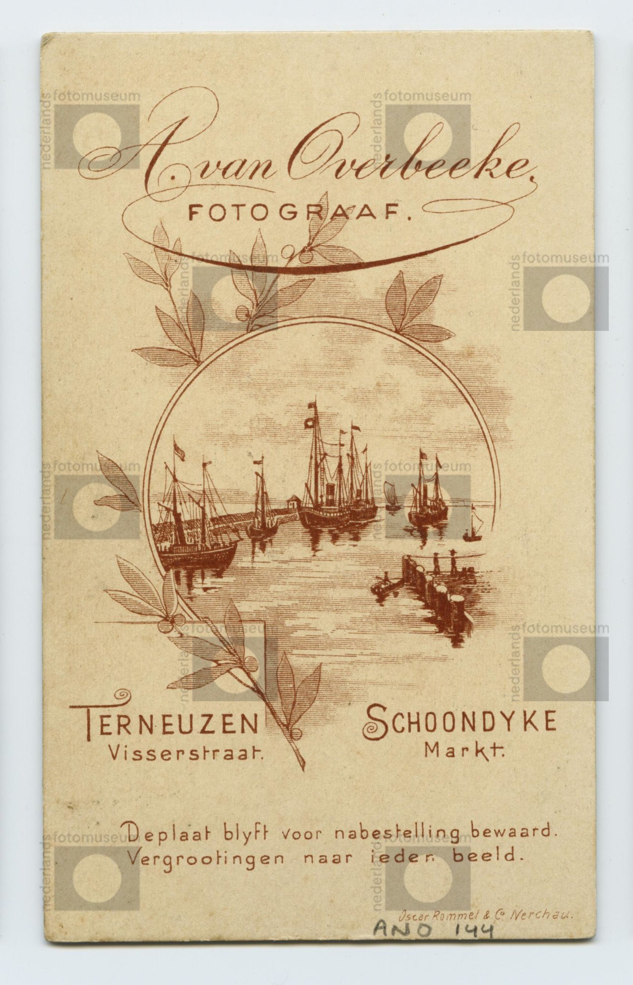 Achterzijde van carte-de-visite (1889)