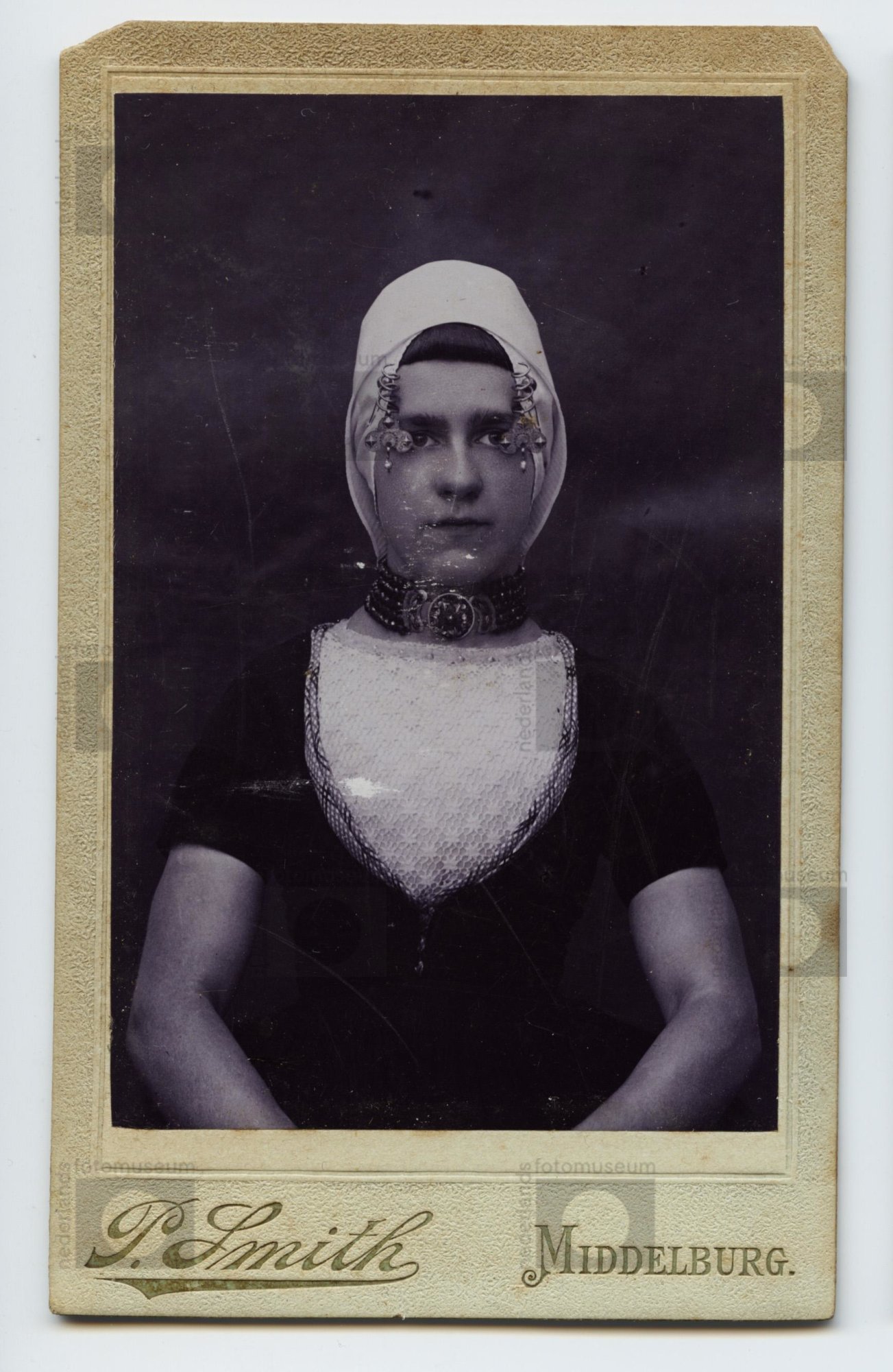 Carte-de-visite, portret van vrouw in Walcherse drac...