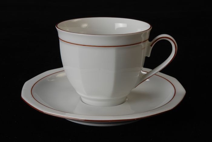 Kop en schotel van Van Nelle, "Linea", wit porselein...