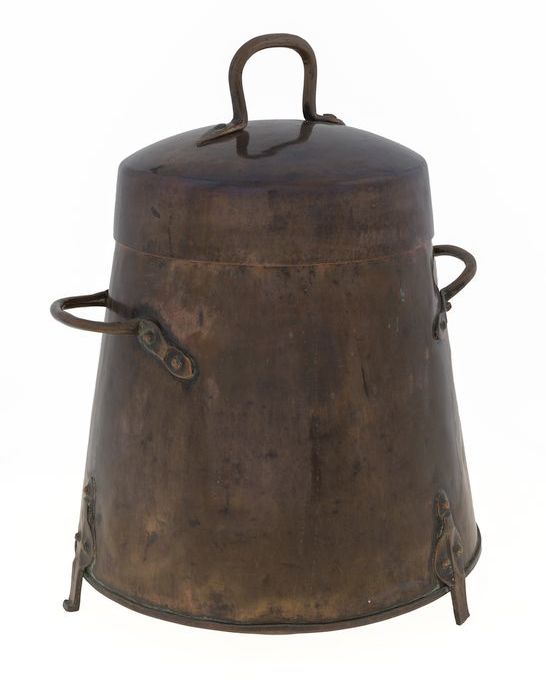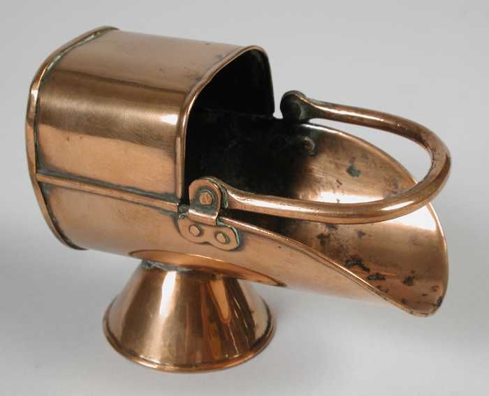 Koperen miniatuur blaker met snuiter, vierkante schotel
