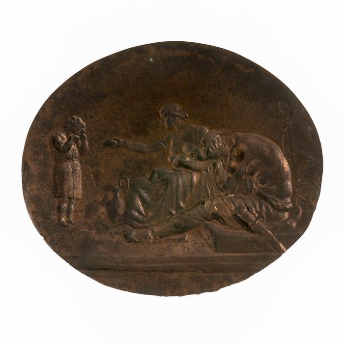 Koperen plaat met bijbelse voorstelling, zalving van...