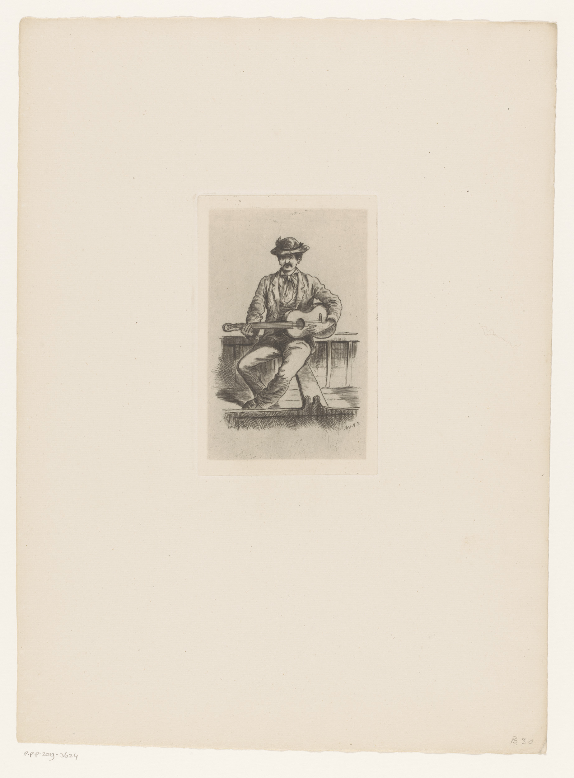 Napolitaanse gitaarspeler gezeten in een boot