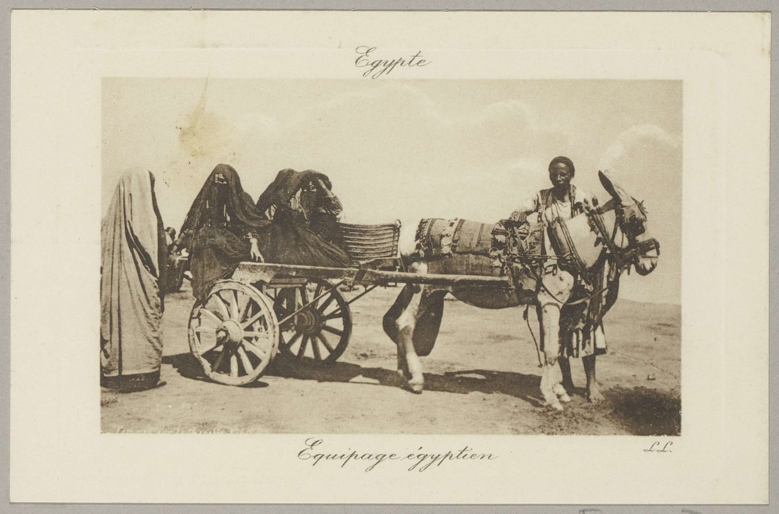 Gesluierde vrouwen op een ezelkar in Egypte