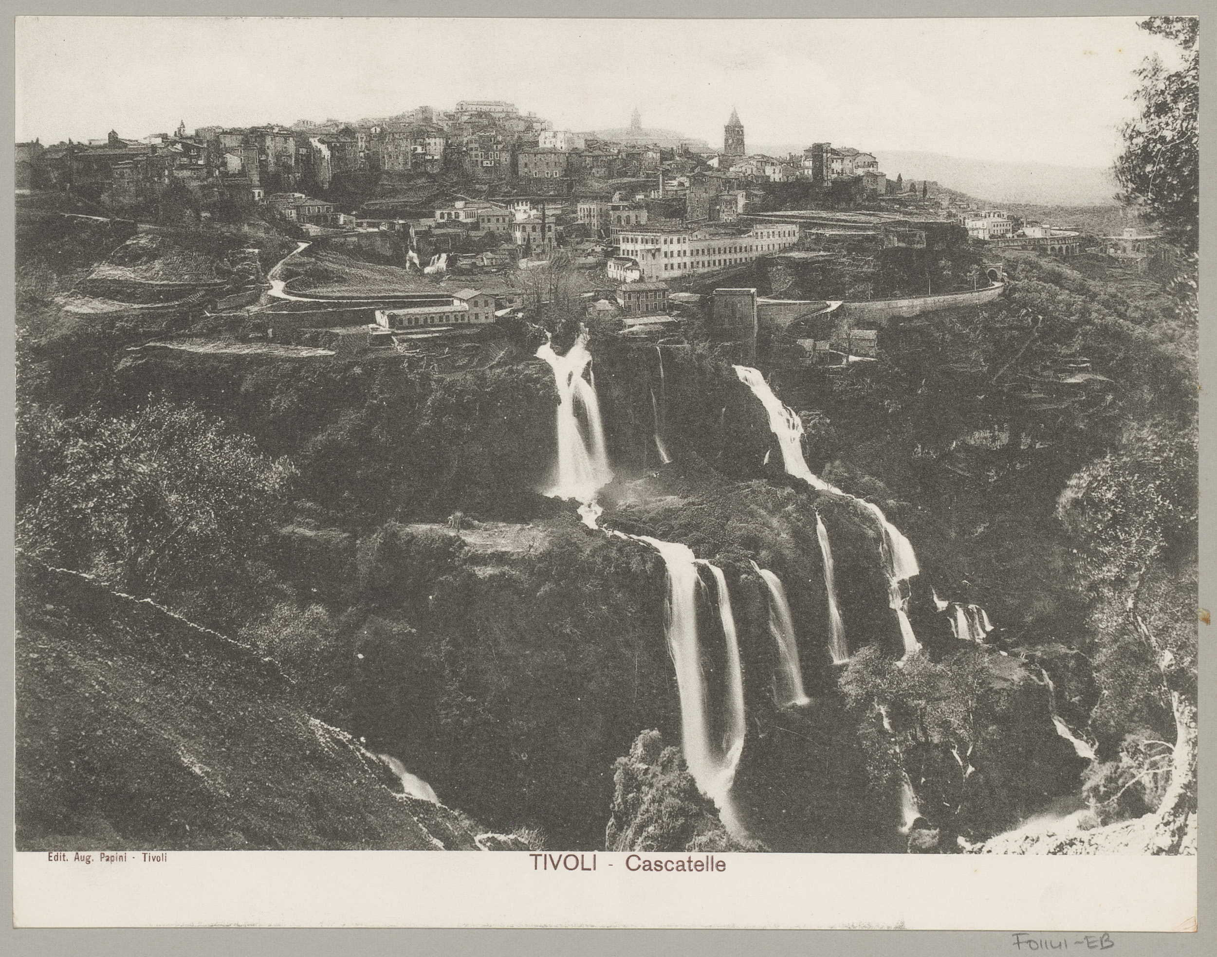 Gezicht op Tivoli met op de voorgrond watervallen