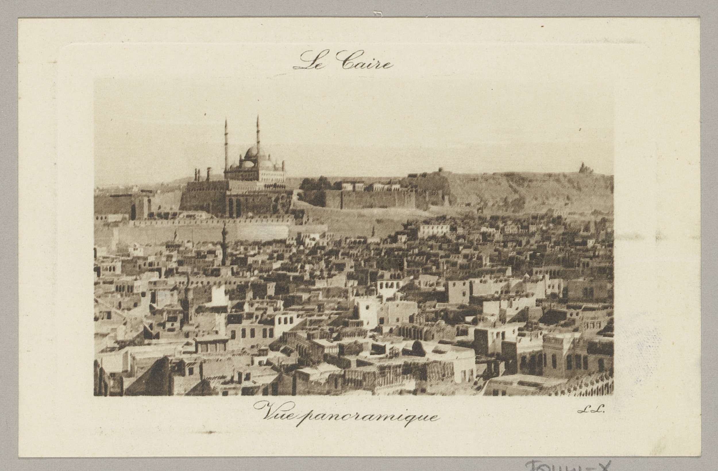 Gezicht op Caïro met links de citadel en de moskee v...
