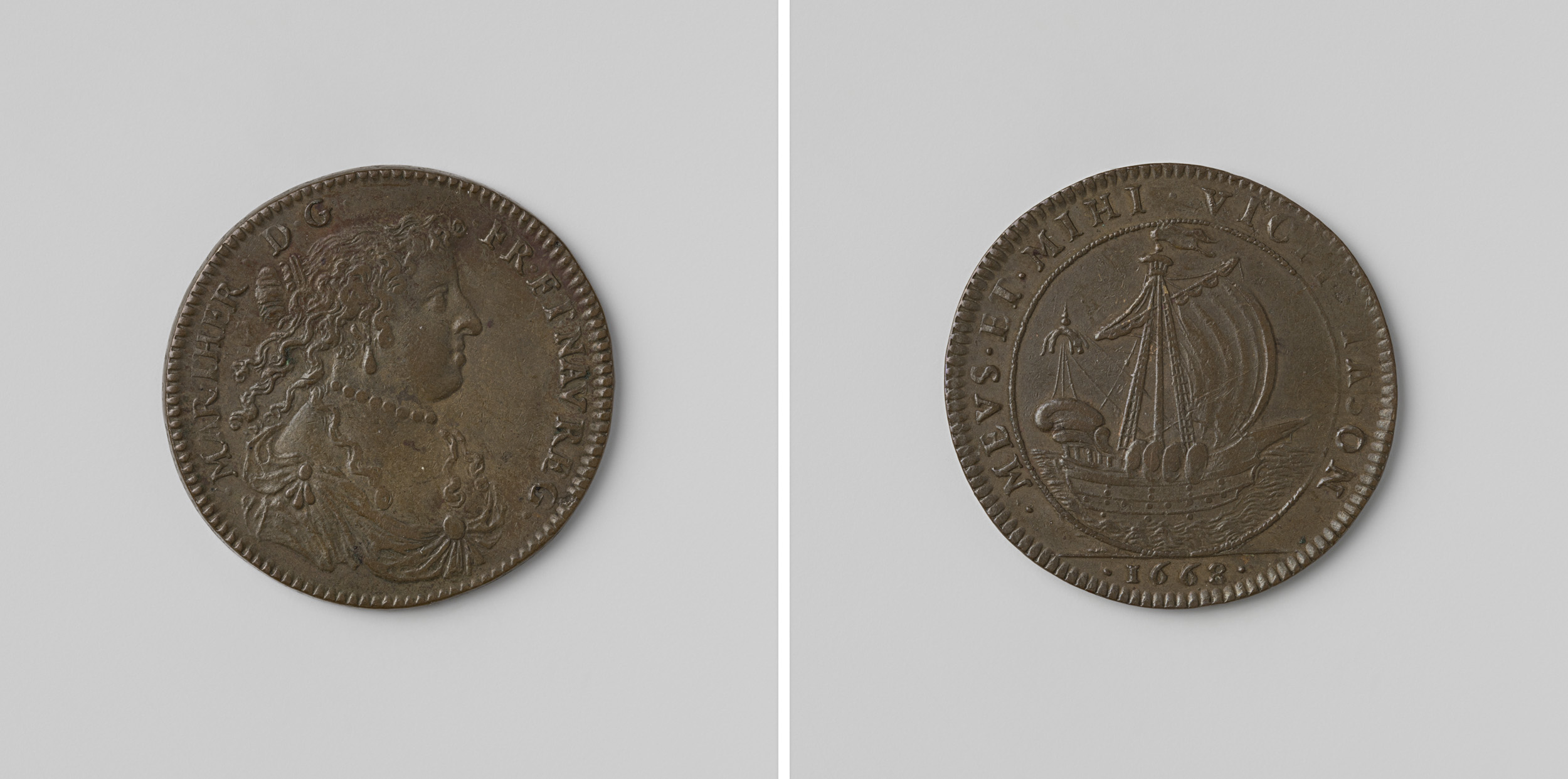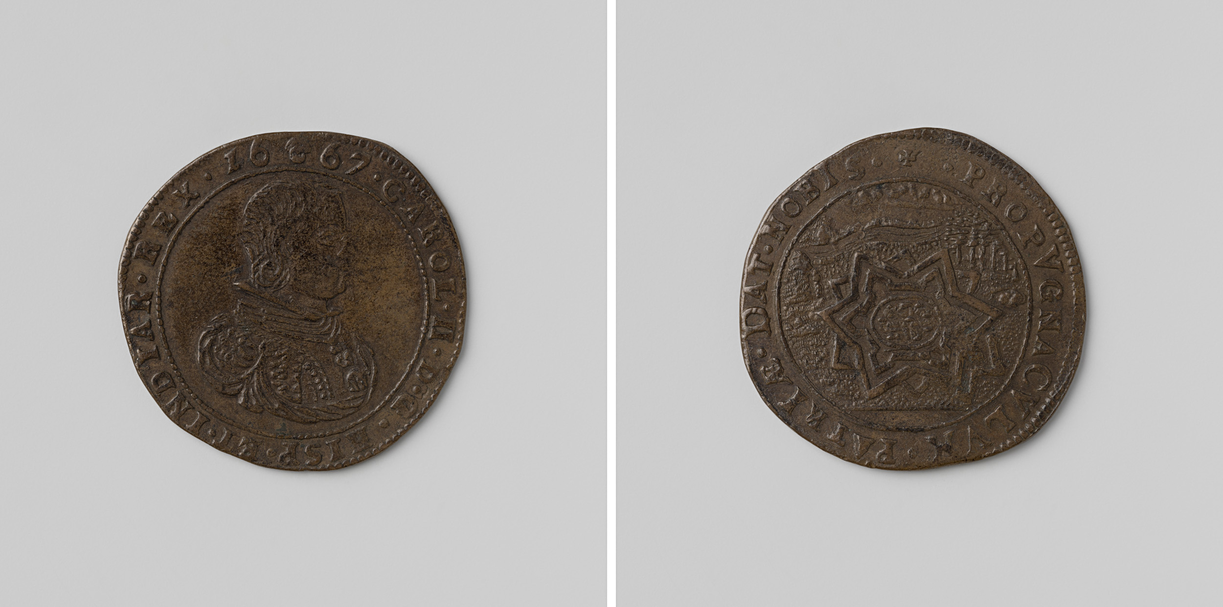 Karel II, koning van Spanje, rekenpenning geslagen o...