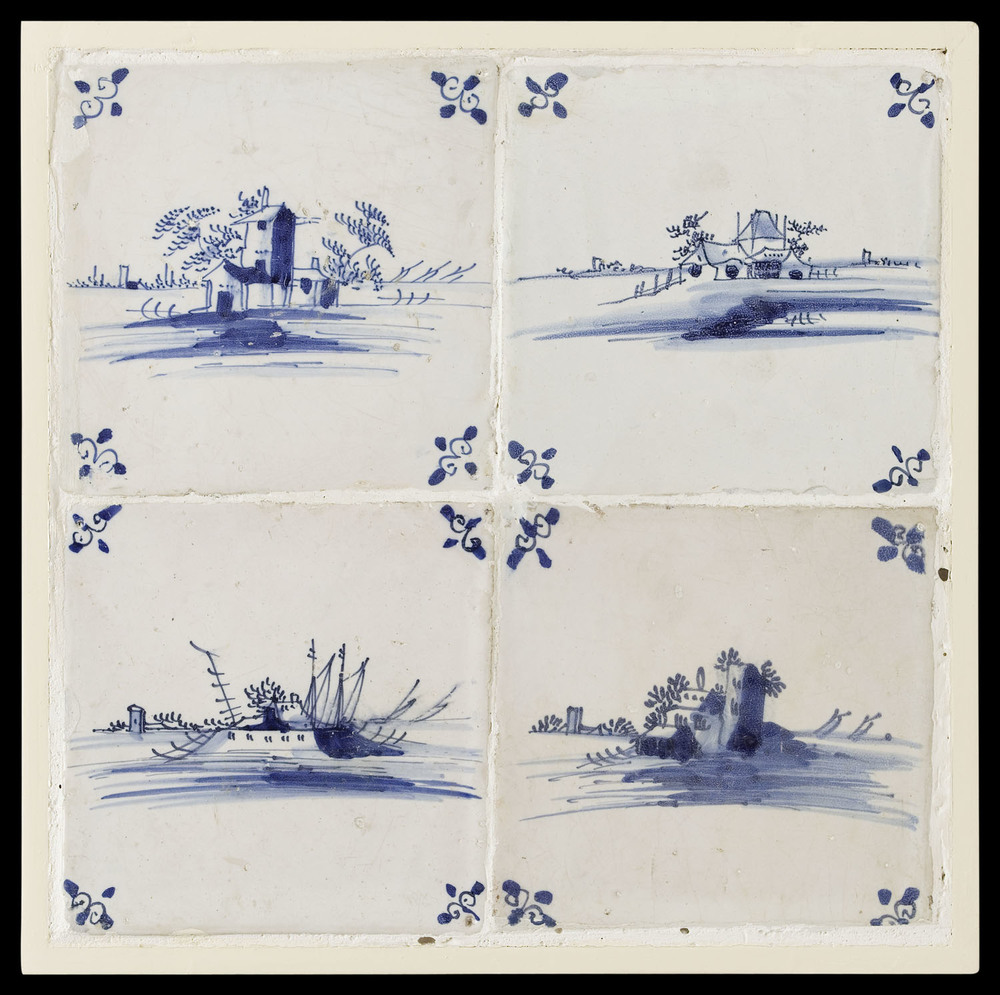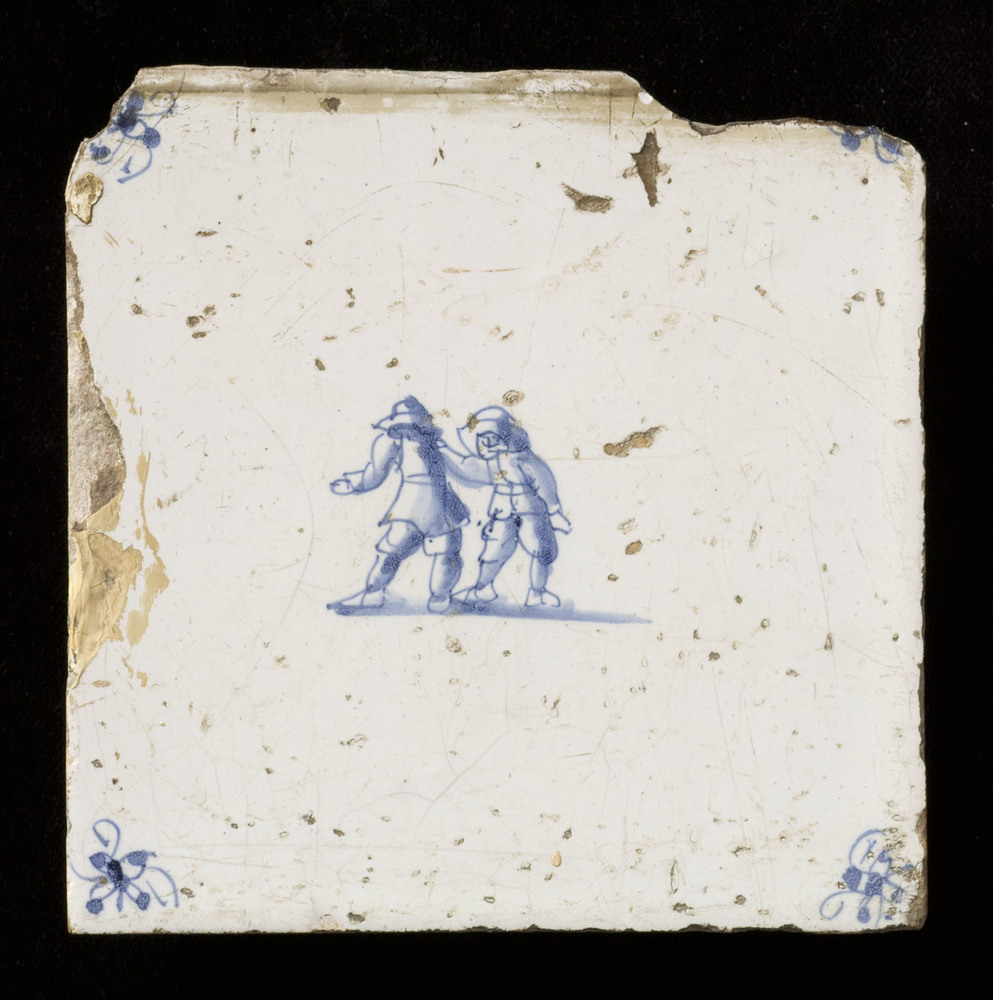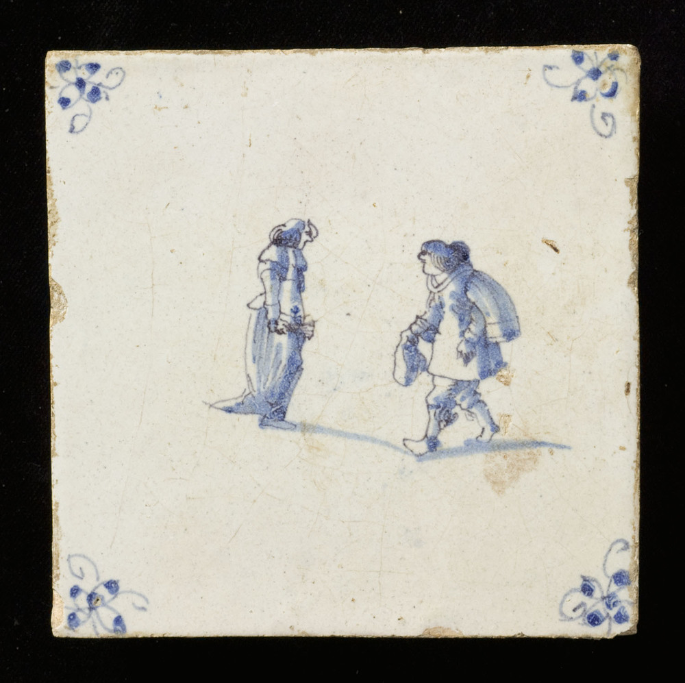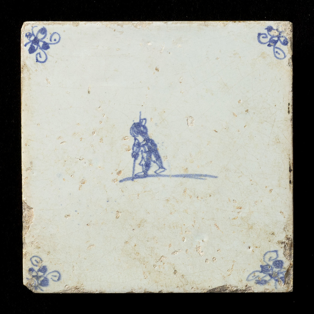tegel van aardewerk met tinglazuur, voorstellende: h...