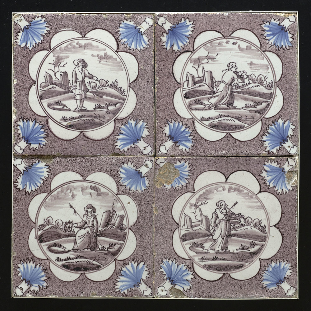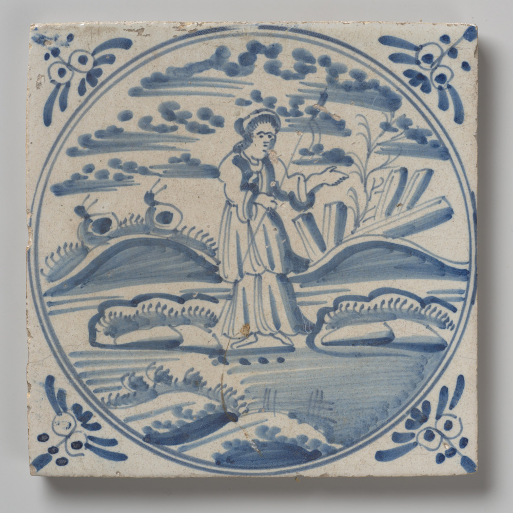 Tegel van keramiek, tinglazuur, voorstellende herder...