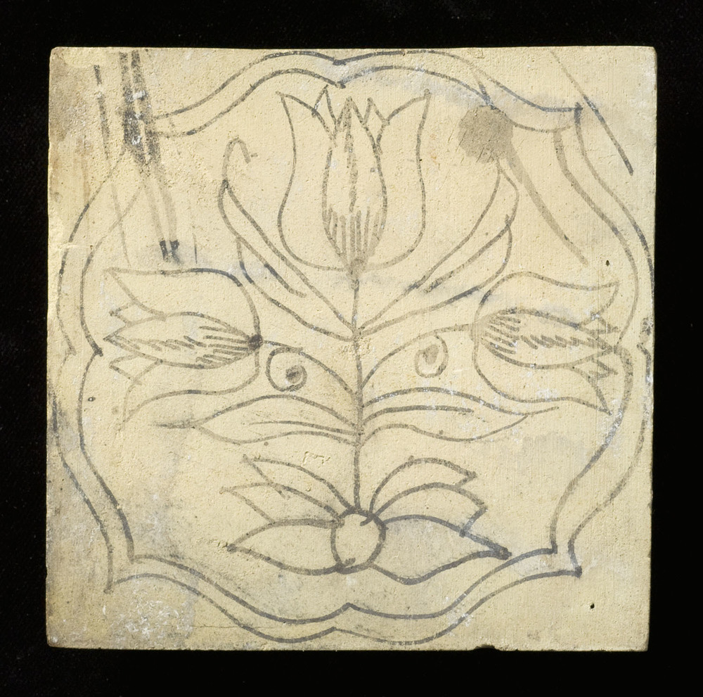 Tegel in tinglazuur, voorstellende roos, vervaardigd...