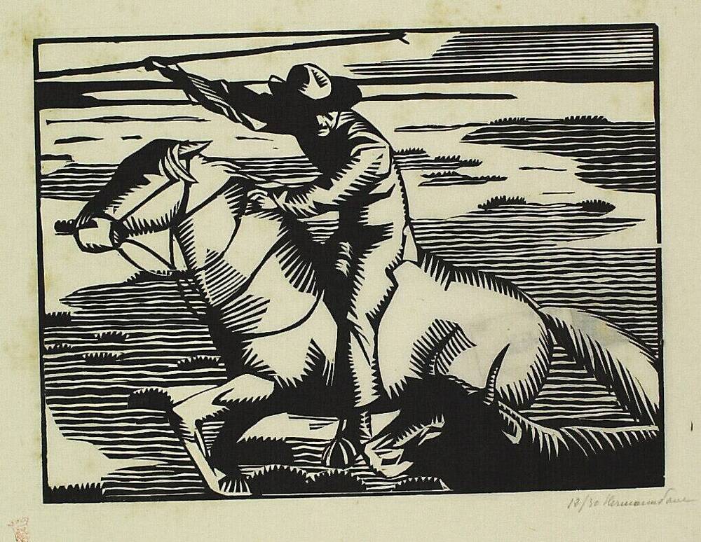 Tekening in sepia en inkt, voorstellende de Ramstore...