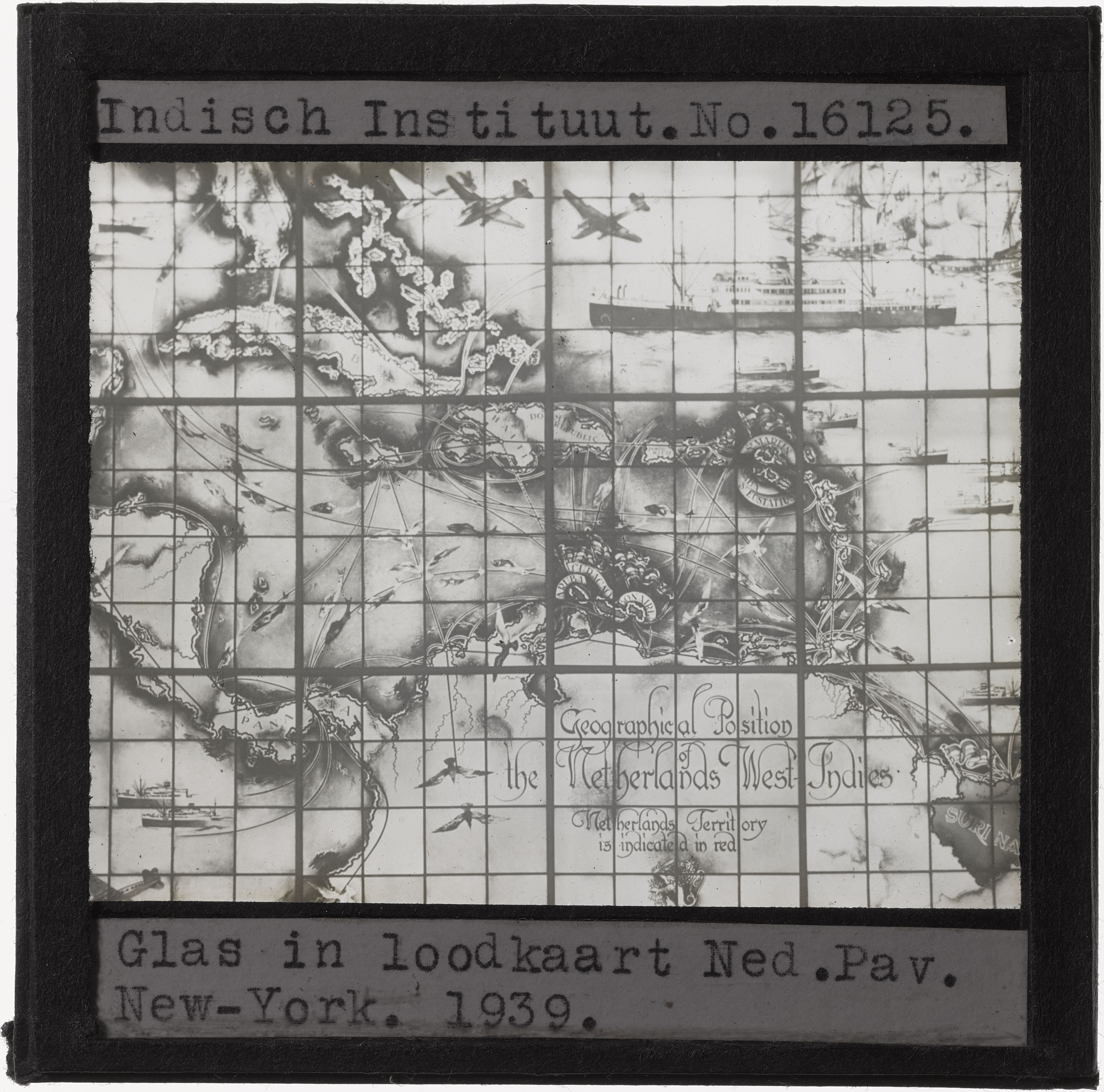 Indisch Instituut. Glas in loodkaart Ned. Pav. New-Y...