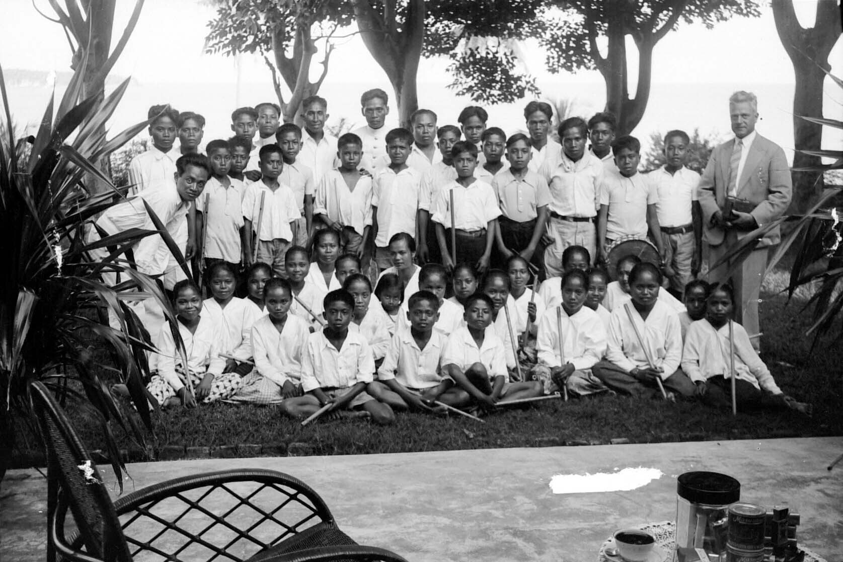 Fluitorkest gevormd door Toraja-kinderen, onder leid...
