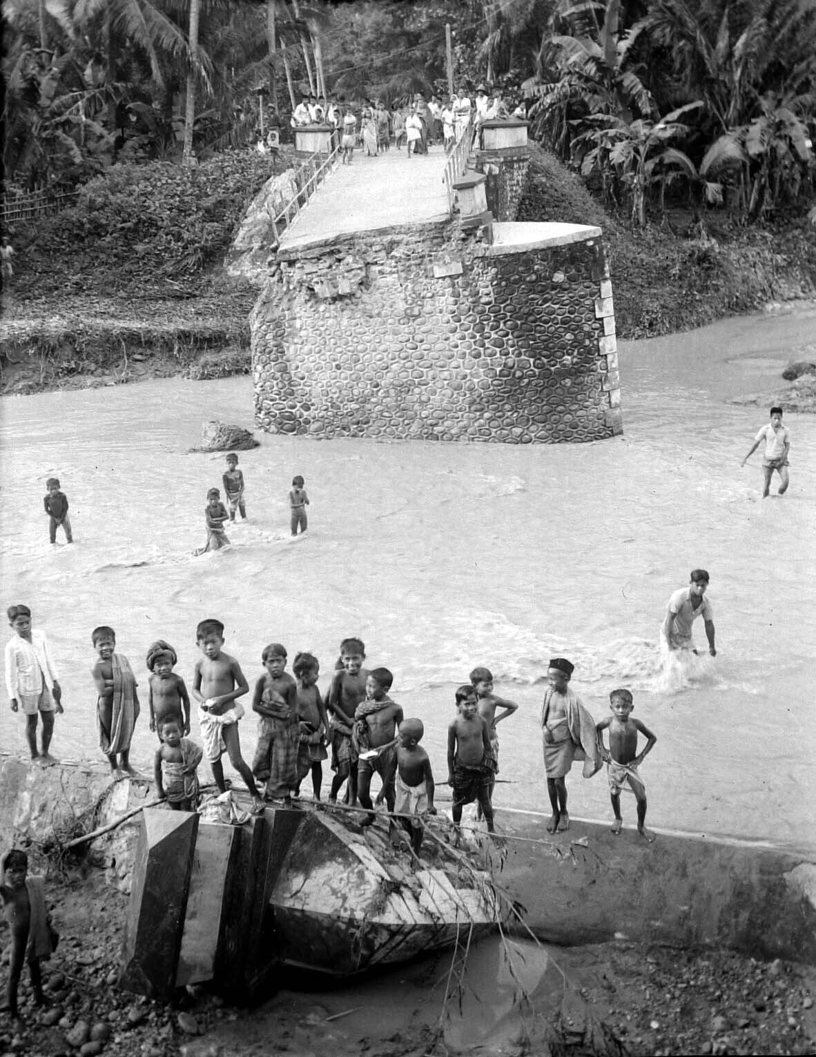 Liggend stenen beeld te Pager Alam, Zuid-Sumatra