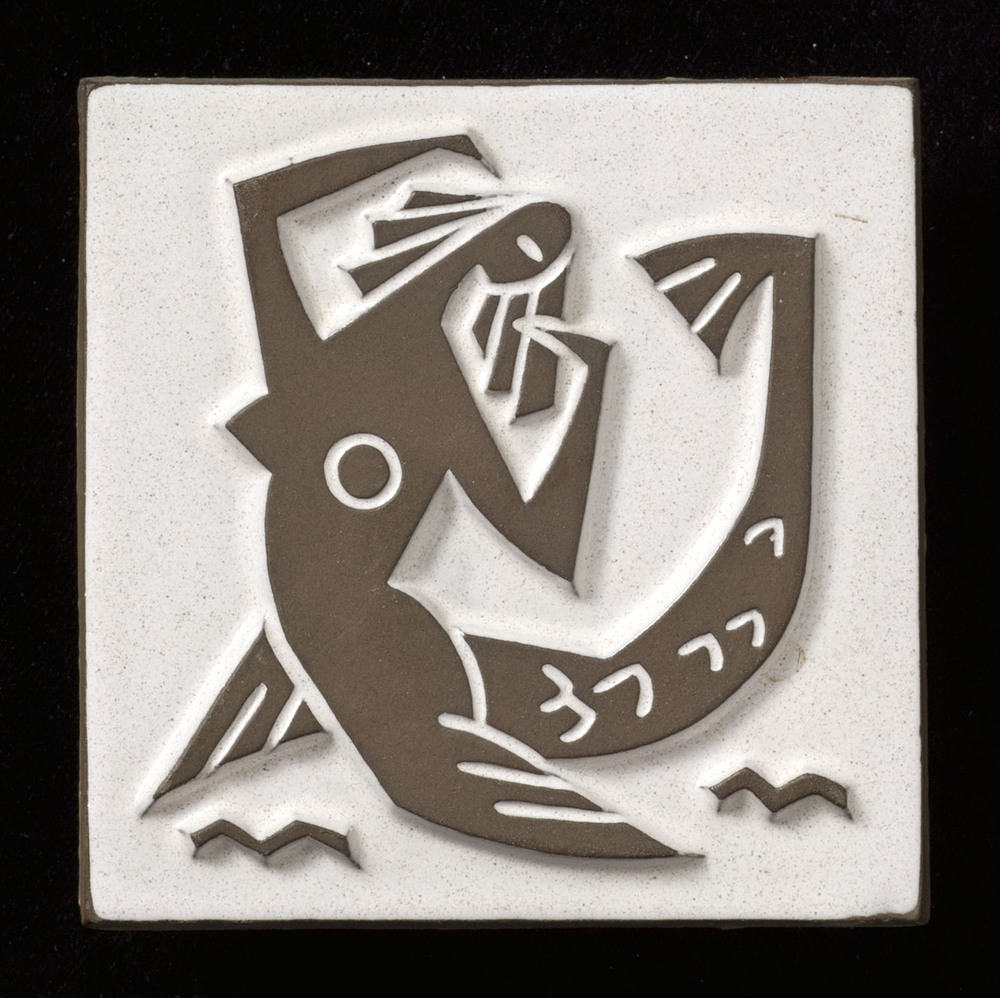 Tegel van keramiek, relief, chanoir, voorstellende: ...