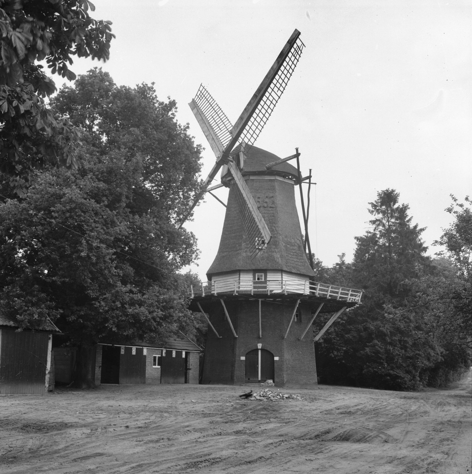 Achtkante stellingmolen schuin van voren gefotografeerd