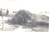 Afsluitdijk; Kornwerderzand, 1928. Schepen met keile...