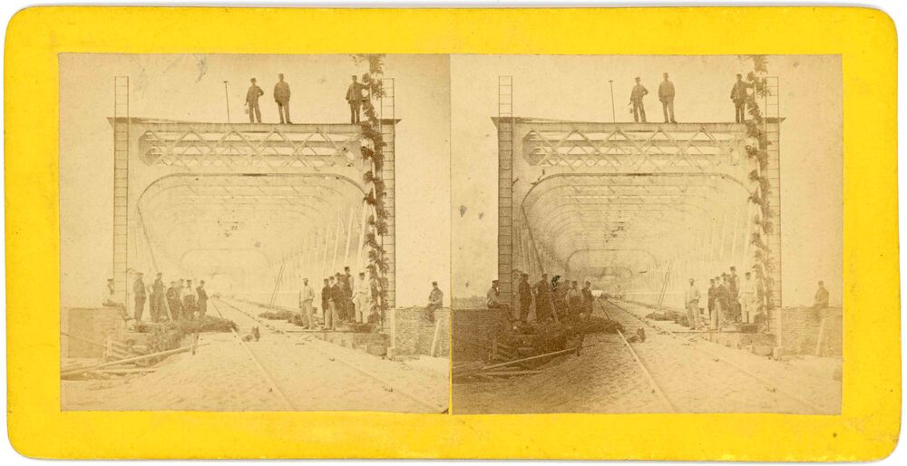 Foto, voorstellende de spoorbrug te Culemborg, 1865-...