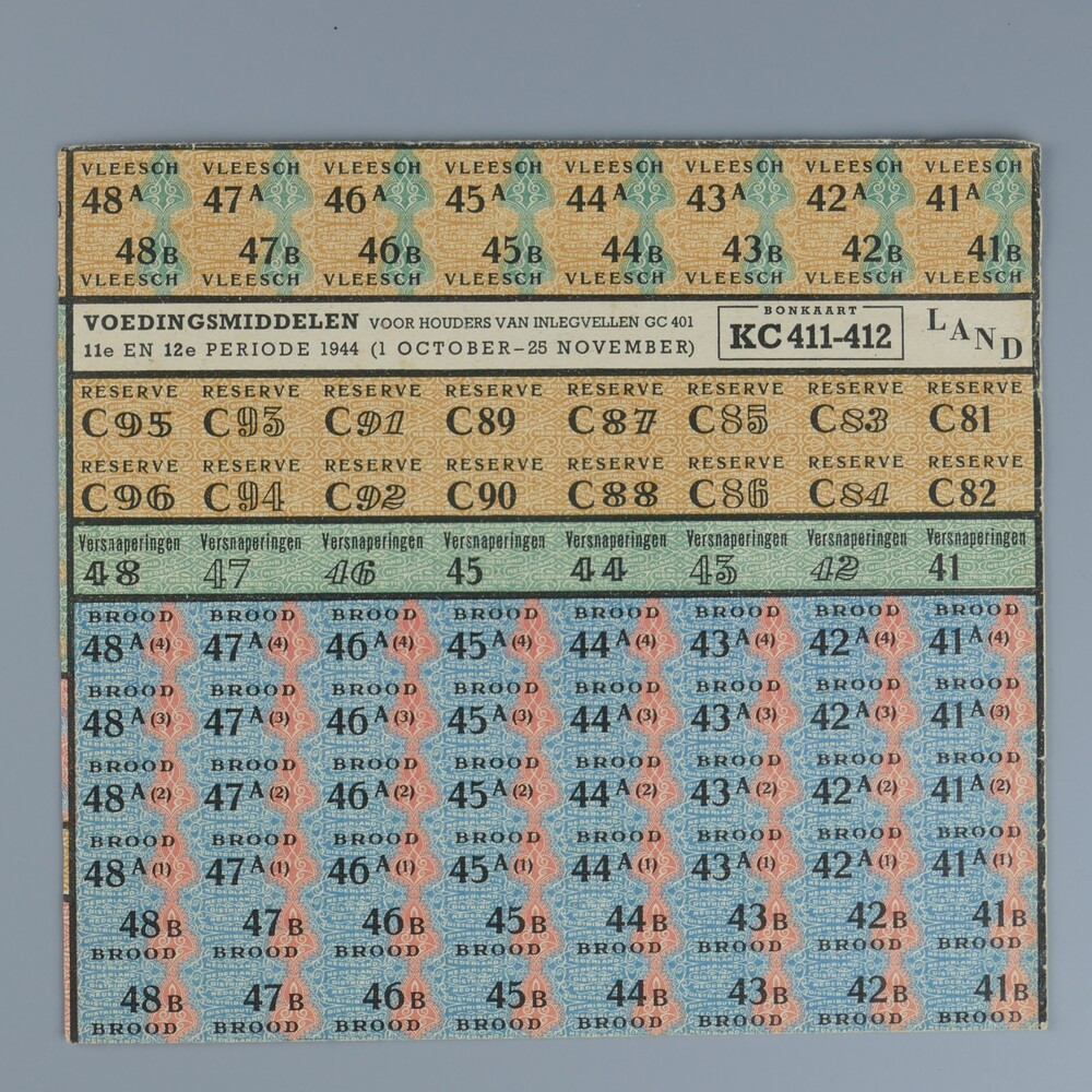 bonkaart met distributiebonnen van papier uit de Twe...