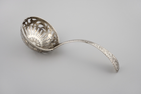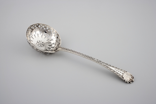 Suikerstrooilepel, bak opengewerkt met rozet, tralie...