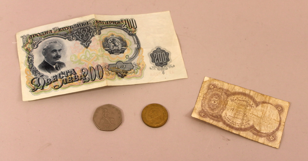 Twee munten en twee bankbiljetten uit verzameling bu...