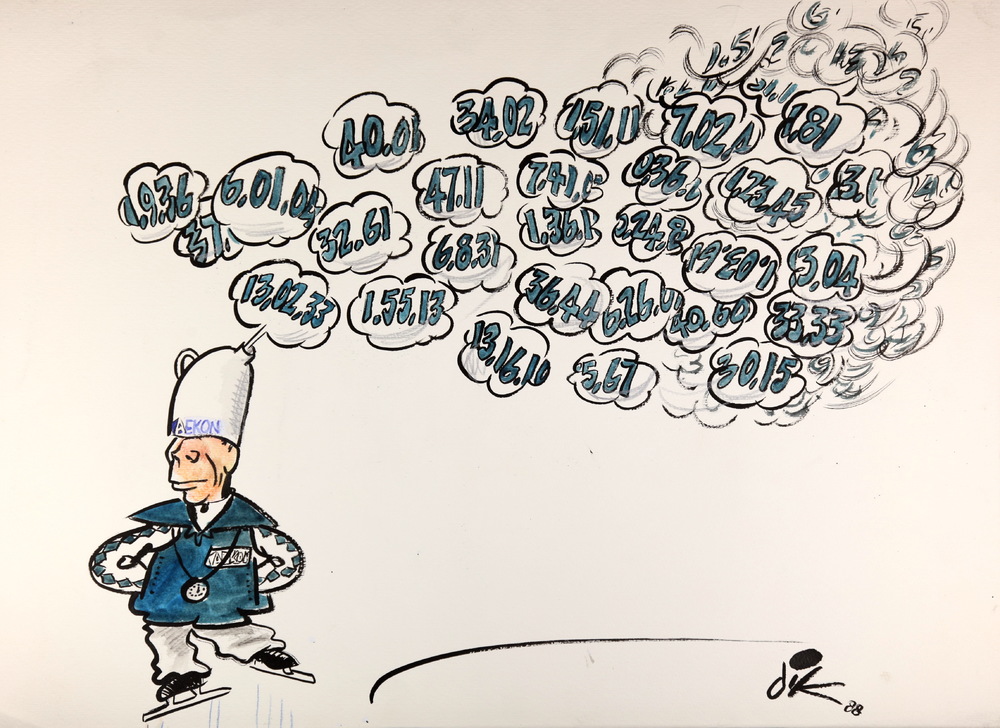 Karikatuurtekening: ‘AEKON’, cijfers, cijfers, Dik B...