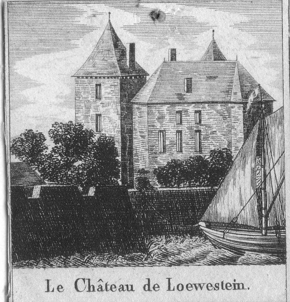 Gezicht op het slot Loevestein vanaf de rivier. Grav...