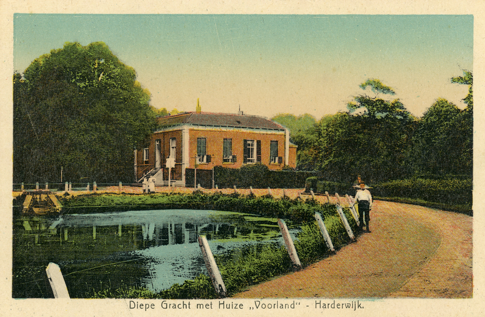 Prentbriefkaart getiteld Diepe Gracht met Huize 'Voo...
