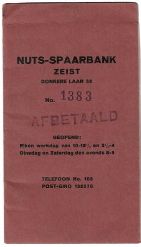 Spaarboekje / Aantekenboekje Spaarbank te Zeist.