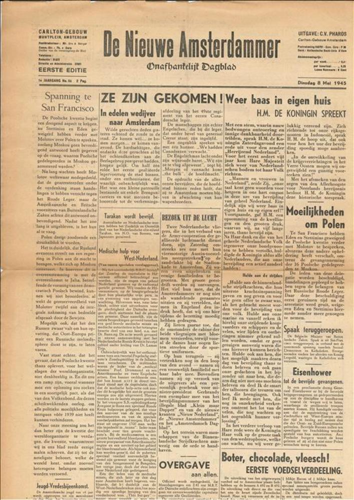De Nieuwe Amsterdammer dinsdag 8 mei 1945