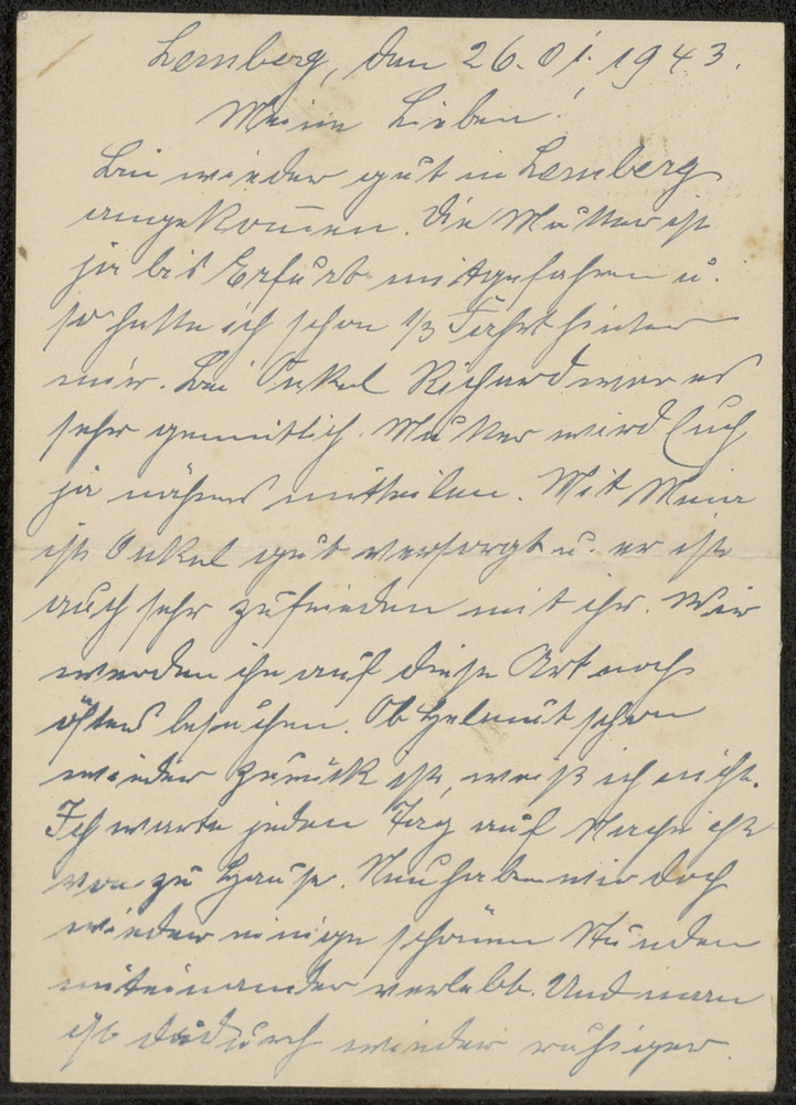 Briefkaart van Jacob Arnold aan Hubert d.d. 26-01-1943