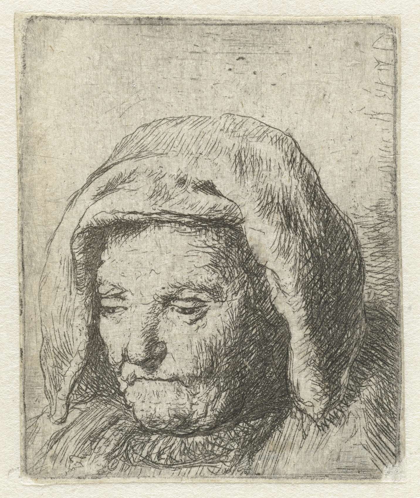 The artist's mother in a cloth headdress, looking do...