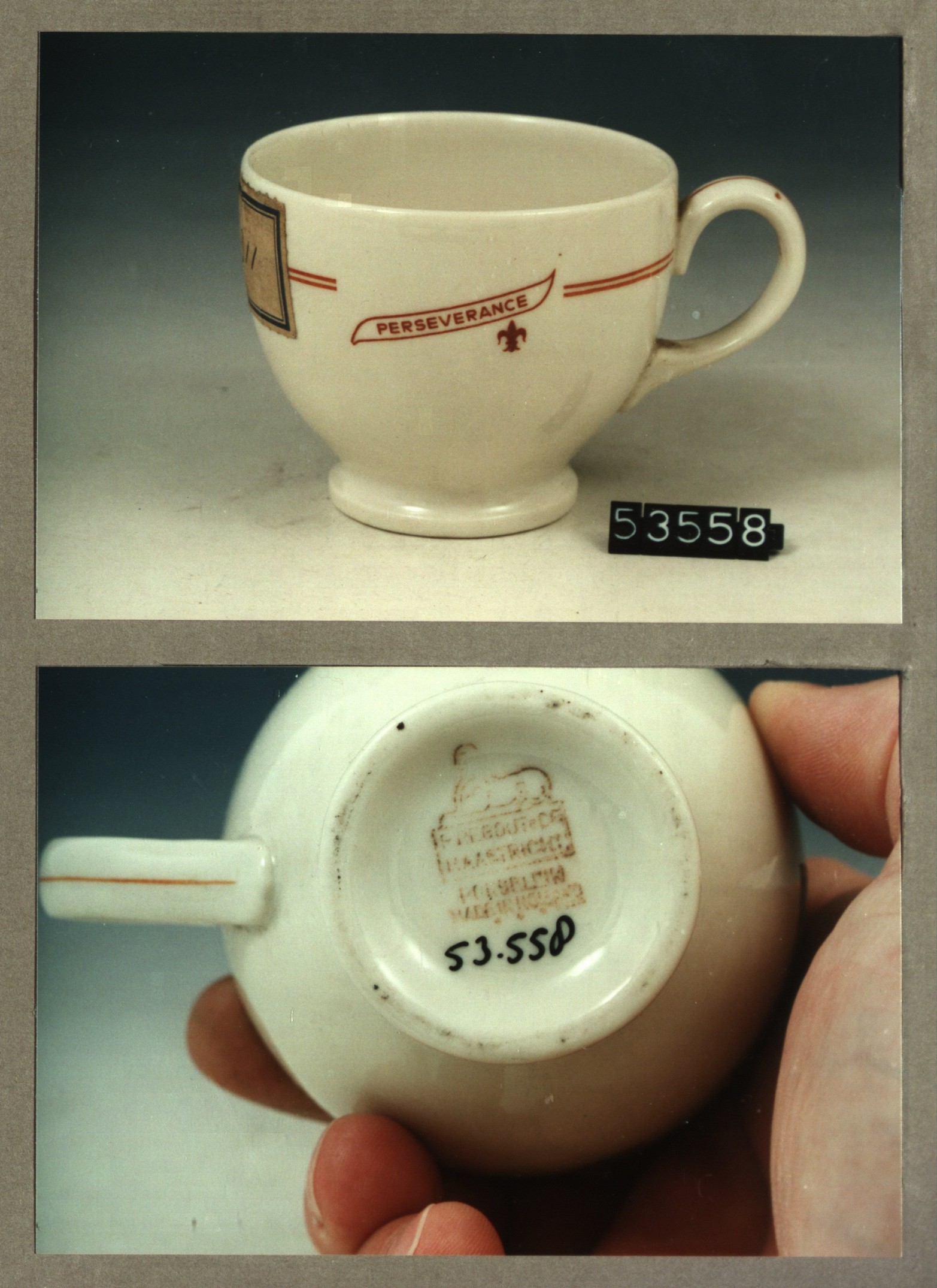Kop met opschrift, model Modern met decor Torenhoeve...