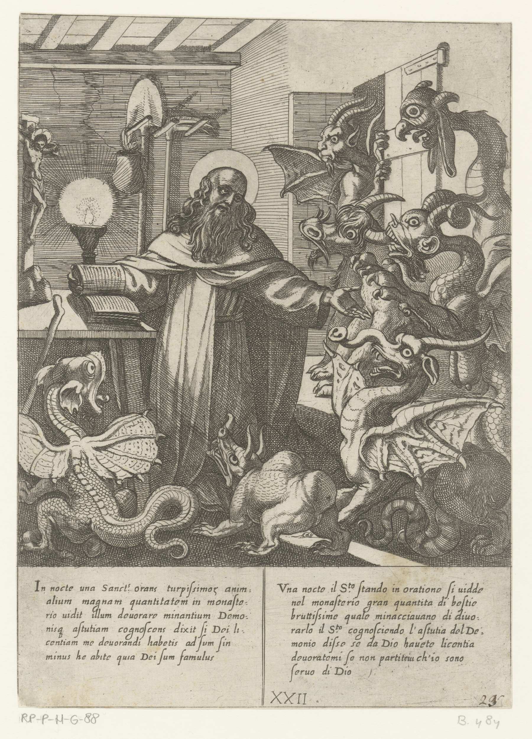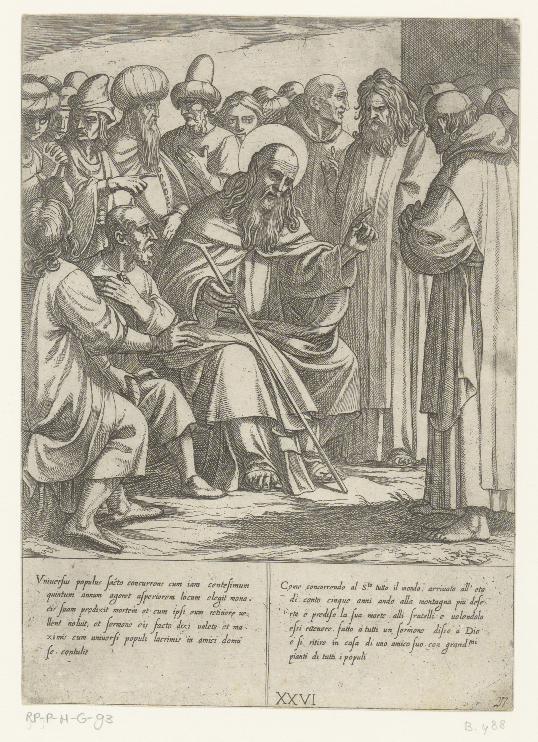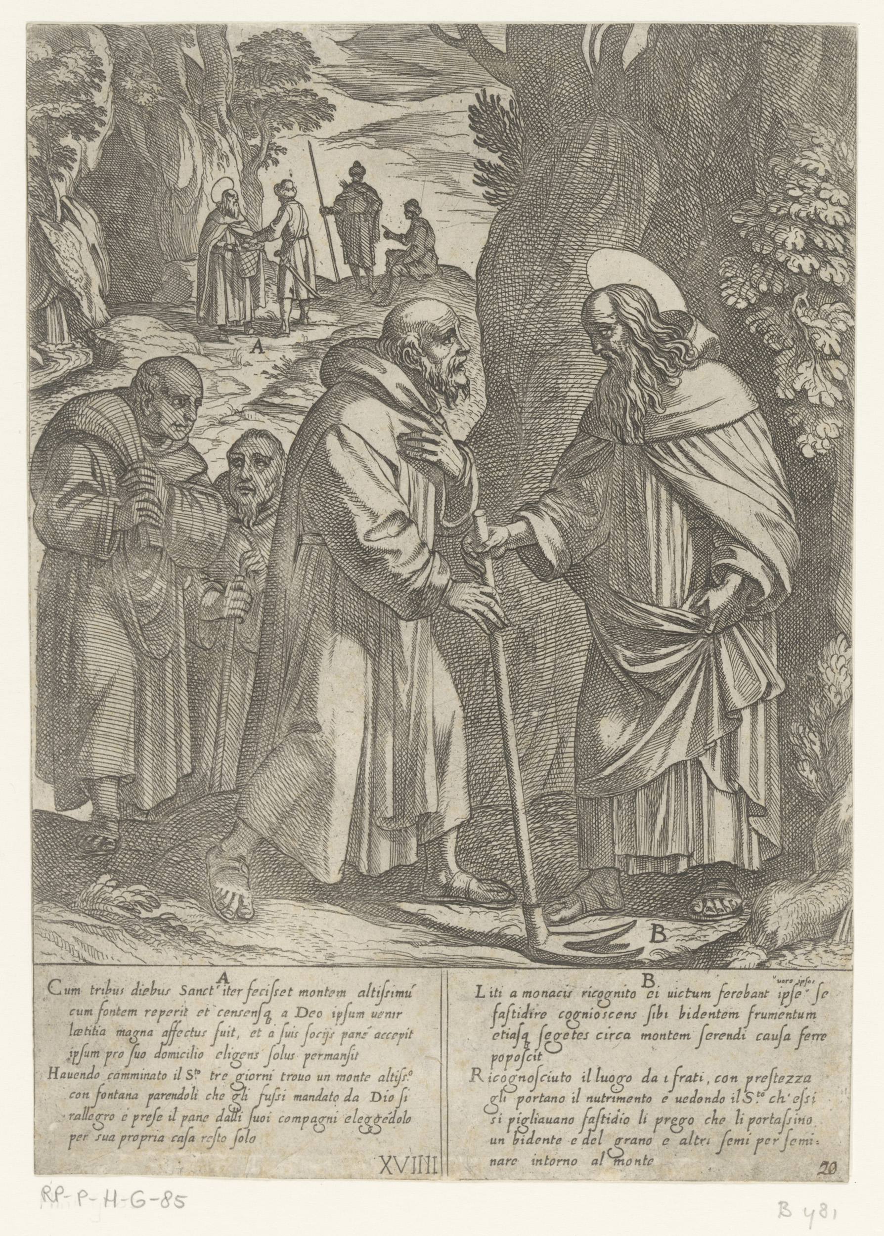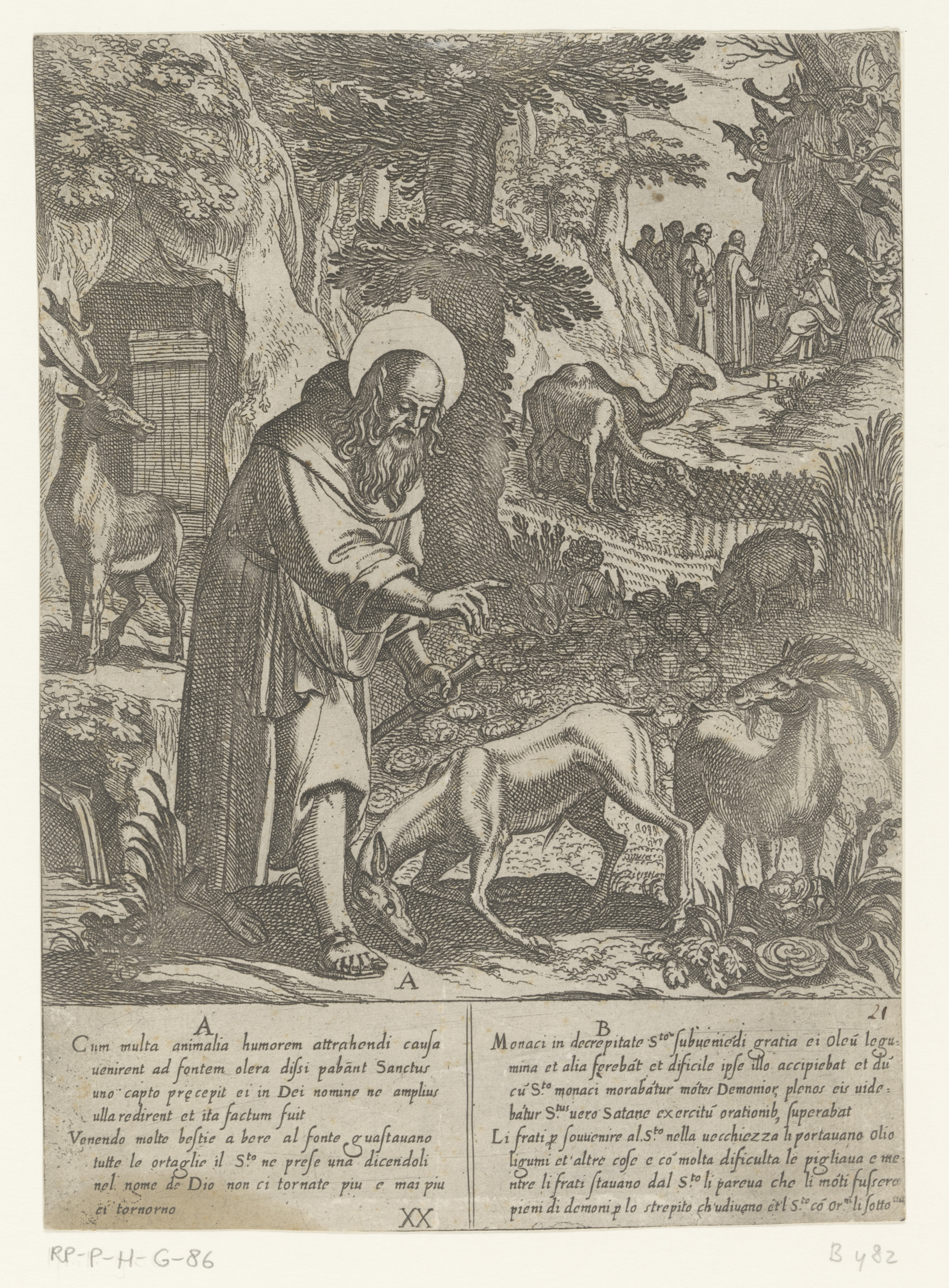 H. Antonius ontvangt voedsel en gereedschap om de gr...