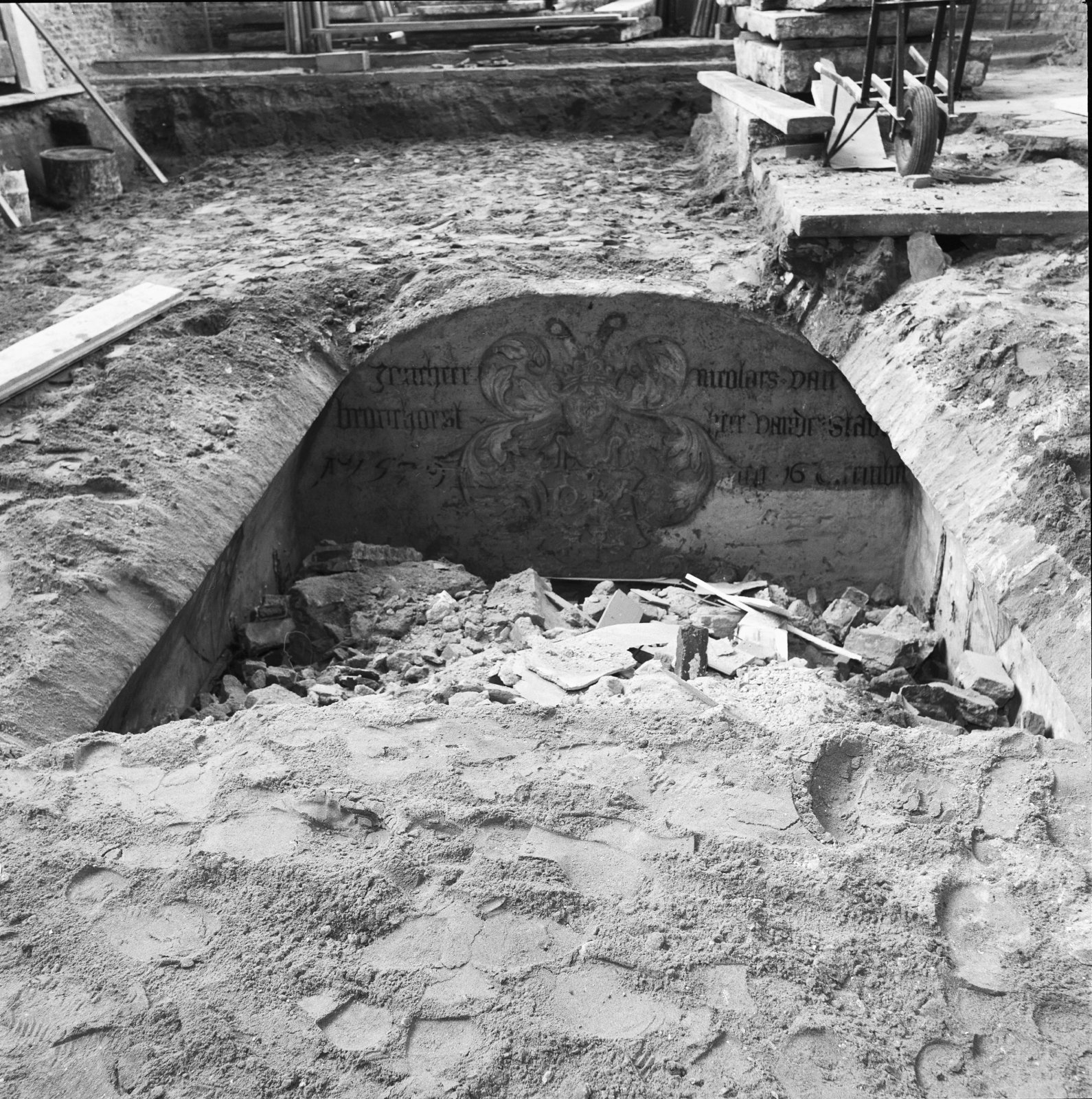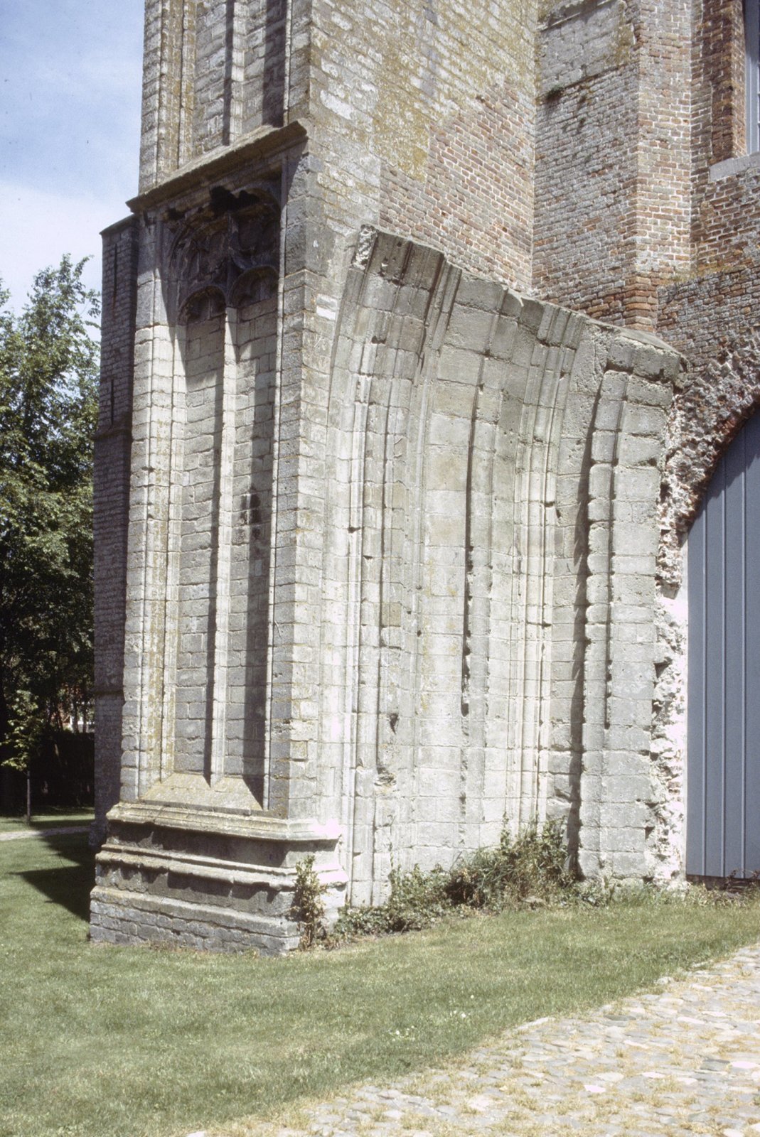 kerktoren, westgevel,torenvoet gedeelte van de ingang