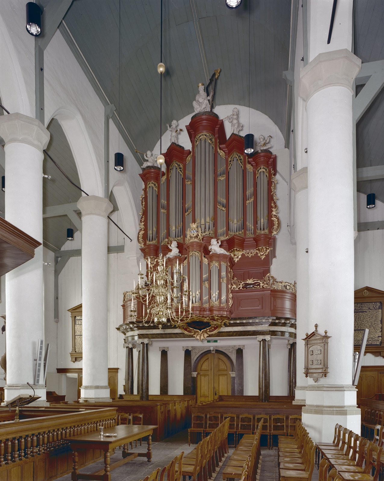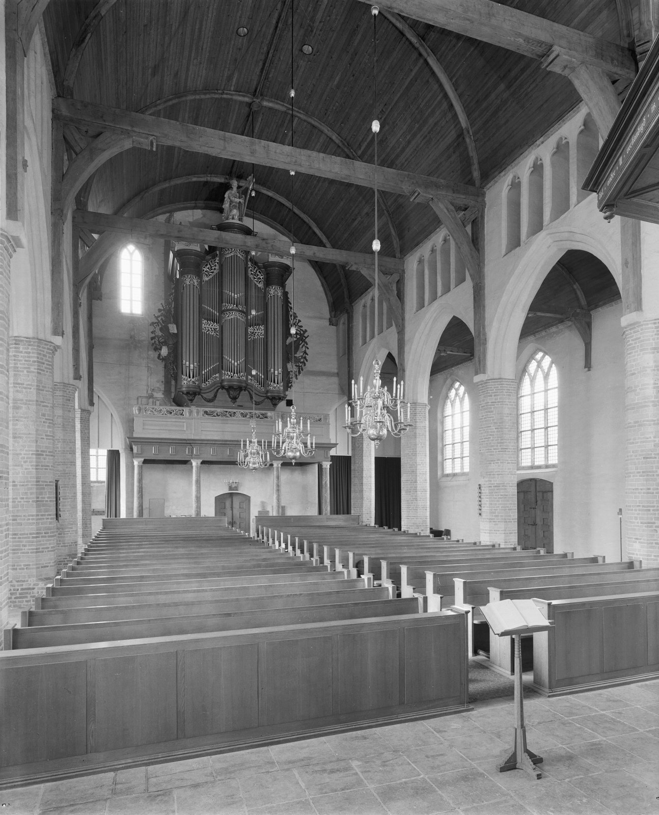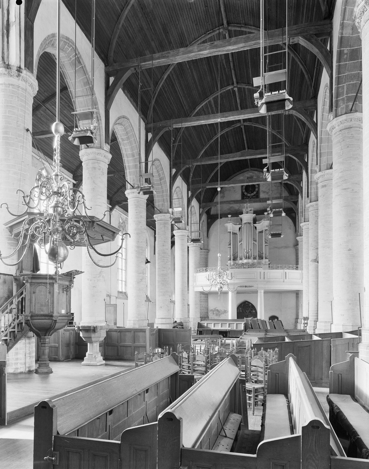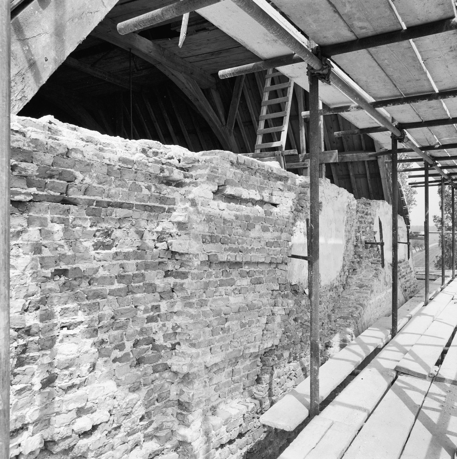 Interieur, Hervormde kerk in de steigers tijdens res...