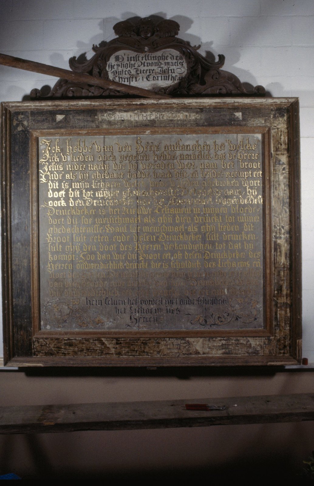 Interieur, dubbelzijdig beschilderd kerkbord uit 1611