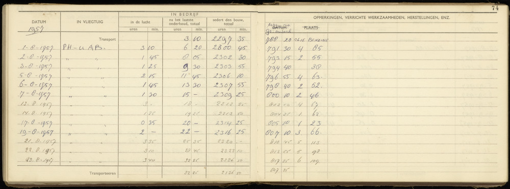 Motorboek PH-NIN blad 74 (Bijlage D)