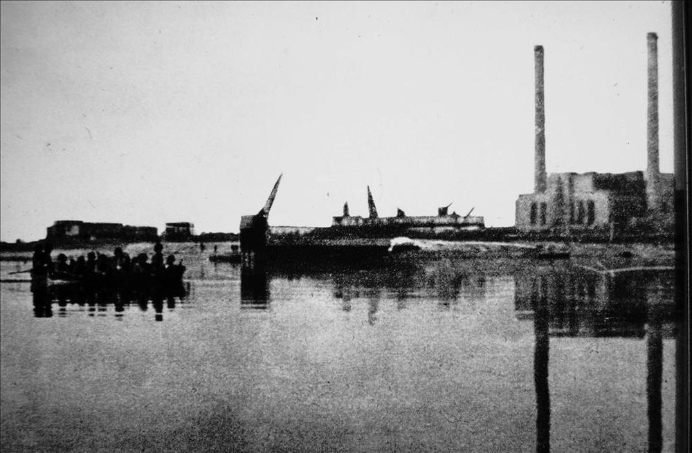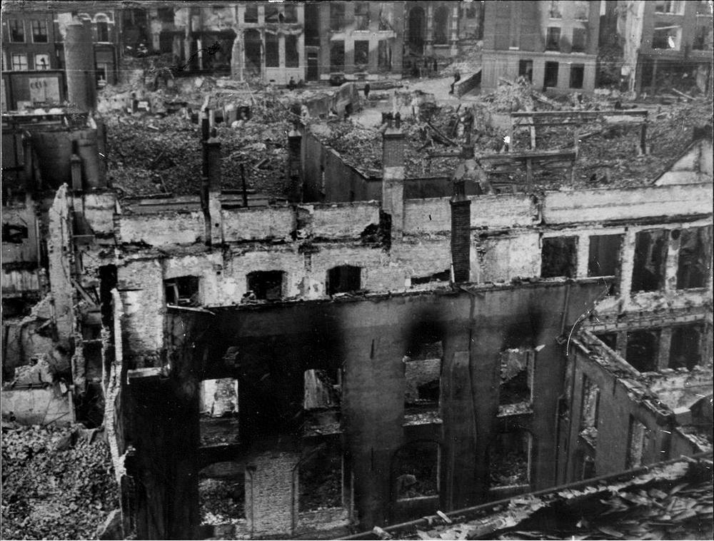 Foto van de verwoeste binnenstad van Nijmegen na het...