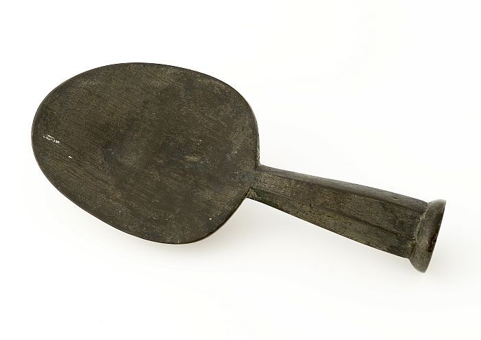 Eivormige bak van lepel met zeskantige aanzet van steel