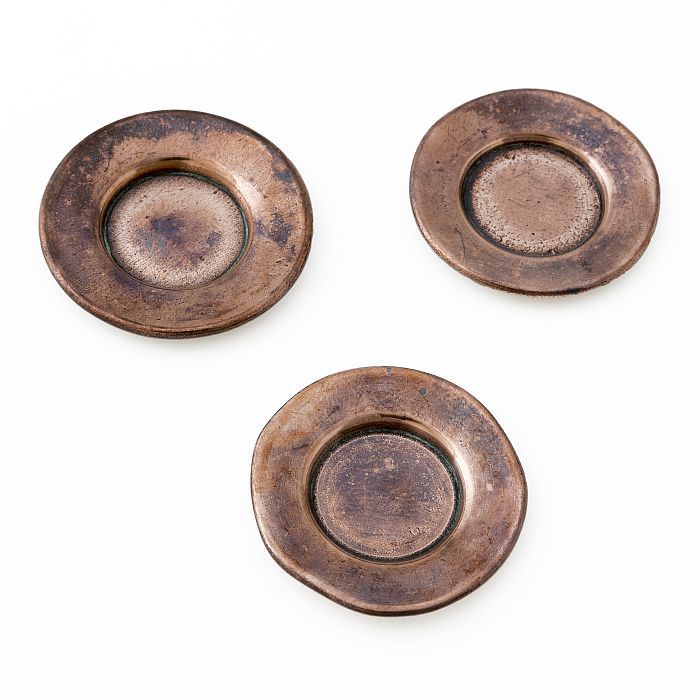 Drie ronde miniatuur schotels met brede rand
