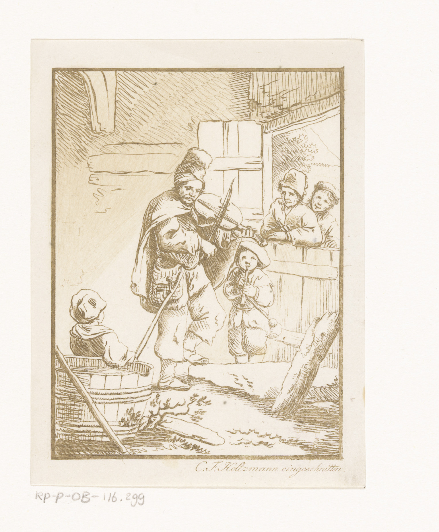 Vioolspelende man en blokfuitspelende jongen