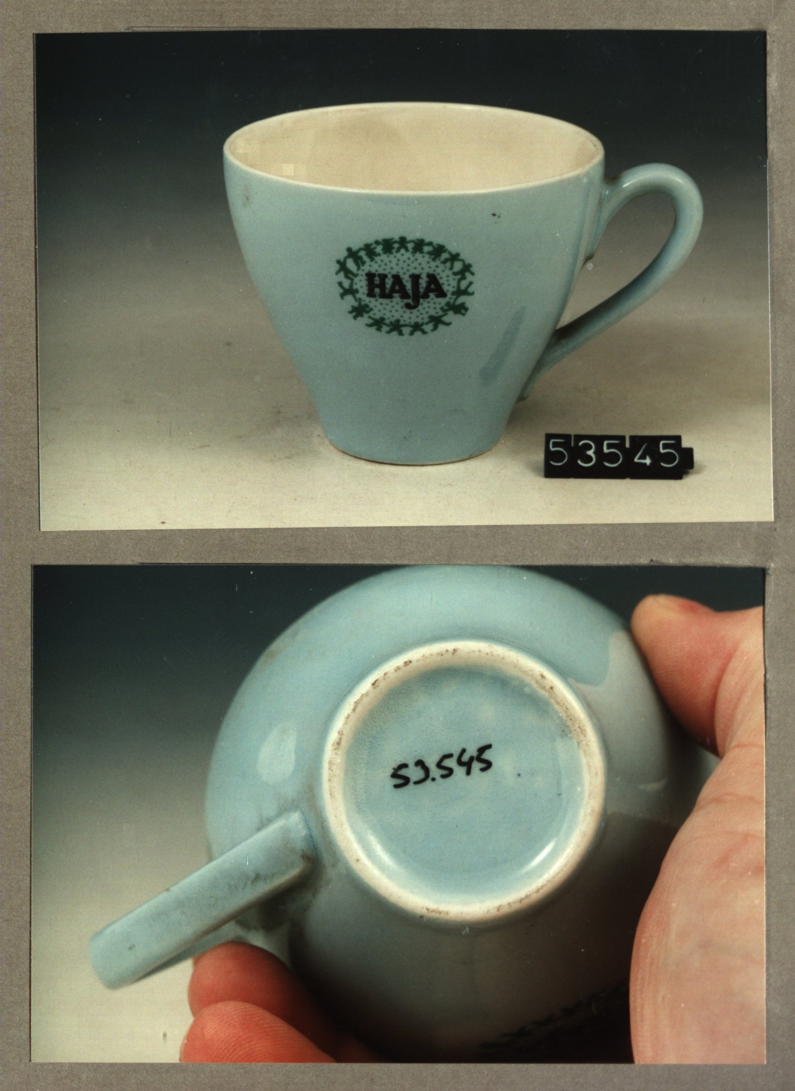 Kop met opschrift, model Jolanda met decor HAJA Haag...