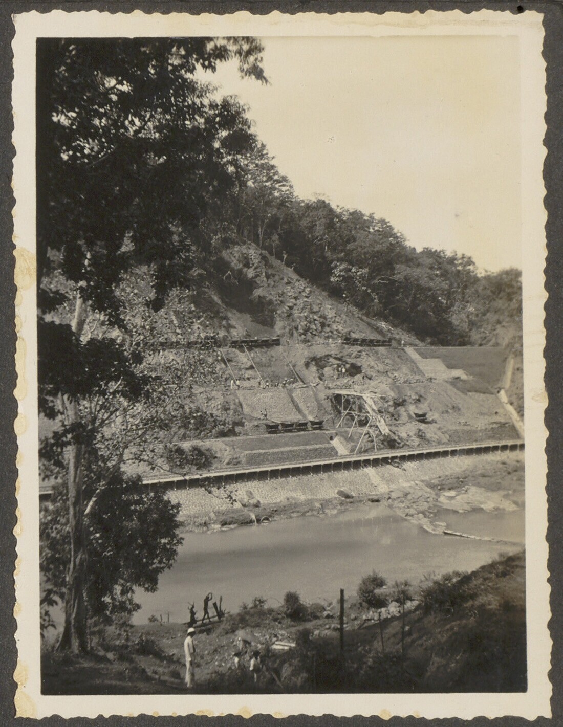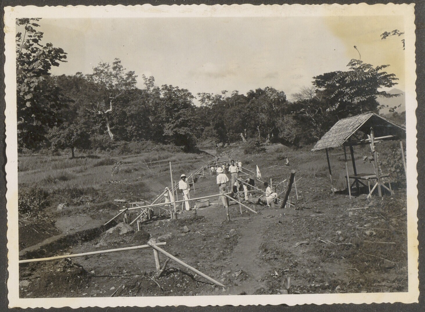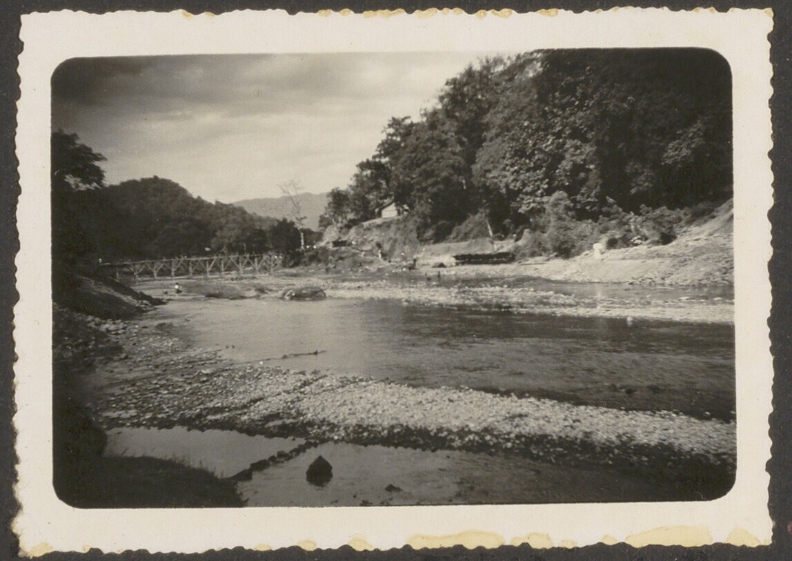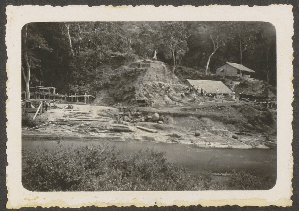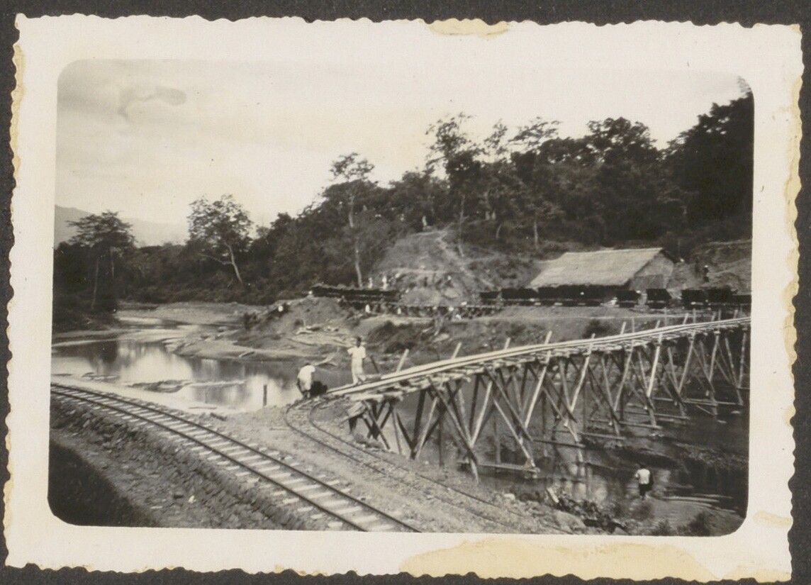 Aanleg van een spoorbrug bij Tjolom