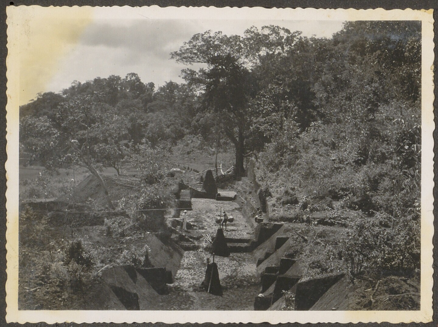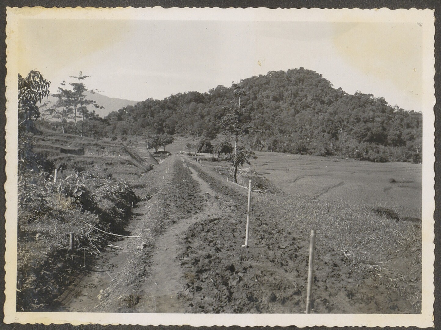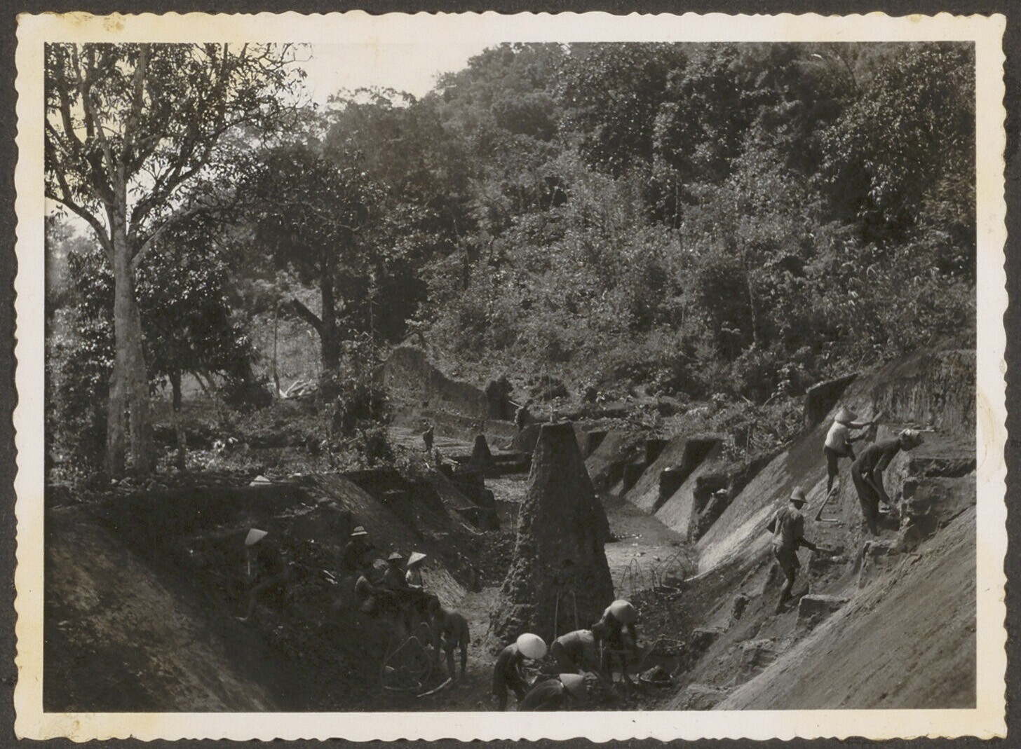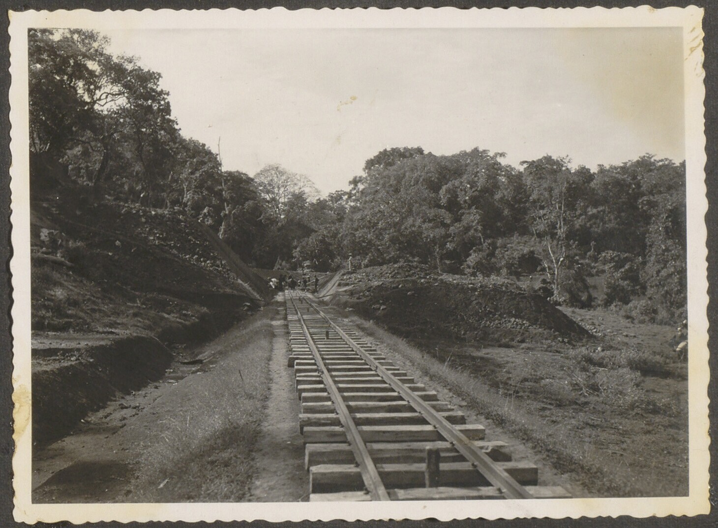 Aanleg van een spoorbaan door Javaanse arbeiders