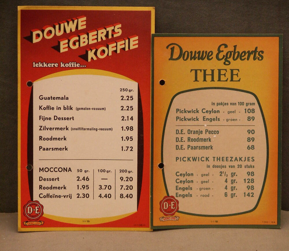 Prijslijsten van bedrukt karton, voor koffie en thee...