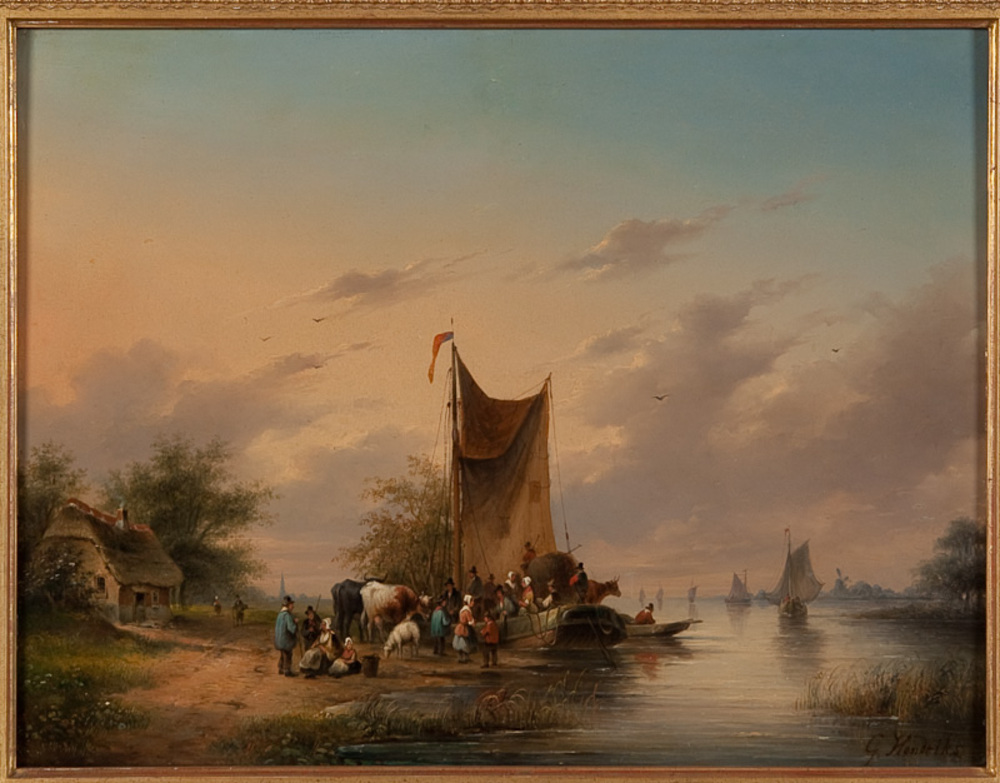 Schilderij, olieverf op paneel, voorstellende een ri...