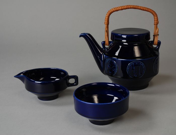 Kobaltblauwe theepot voor Van Nelle, deel van theese...